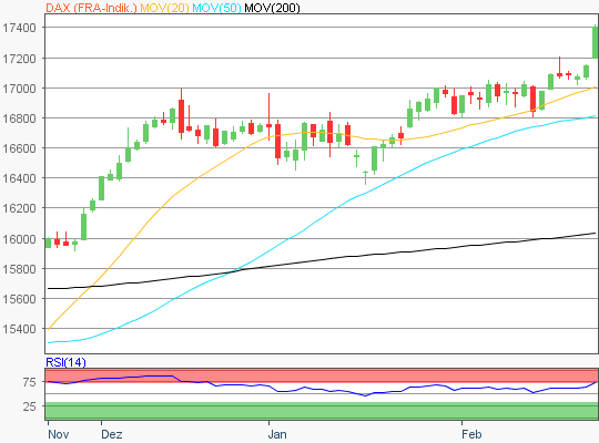Der DAX schloss am Donnerstag via Xetra mit einem recht ordentlichen Kursgewinn von 1,47 Prozent und 17.370,45 Punkten.