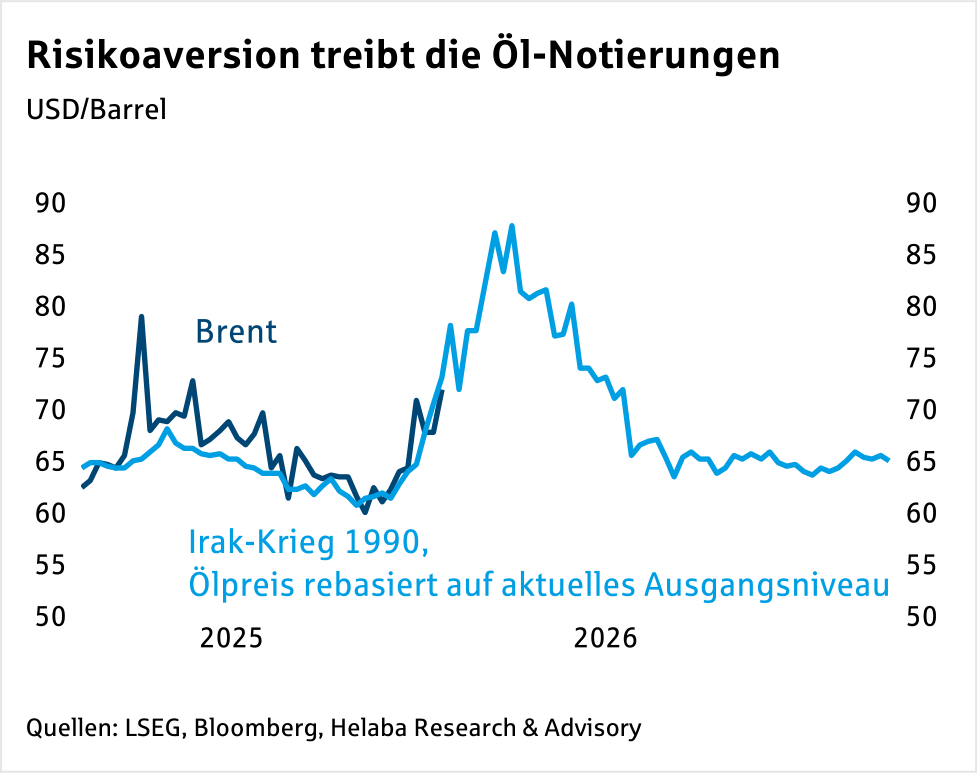 Im günstigsten Fall wäre eine Militärintervention vorstellbar, deren Umfang – wie in Venezuela – eng begrenzt ist und das Regime in Teheran zügig zu einem Abkommen mit den USA zwingt. Es käme dann nicht zu nennenswerten Beschädigungen der Ölproduktion im Iran und/oder in benachbarten Staaten. Exporte von Öl und LNG durch den Persischen Golf würden nicht beeinträchtigt. Wie beim zweiten Irak-Krieg 2003 wären wohl nur vorübergehend steigende Risikoprämien wahrscheinlich.