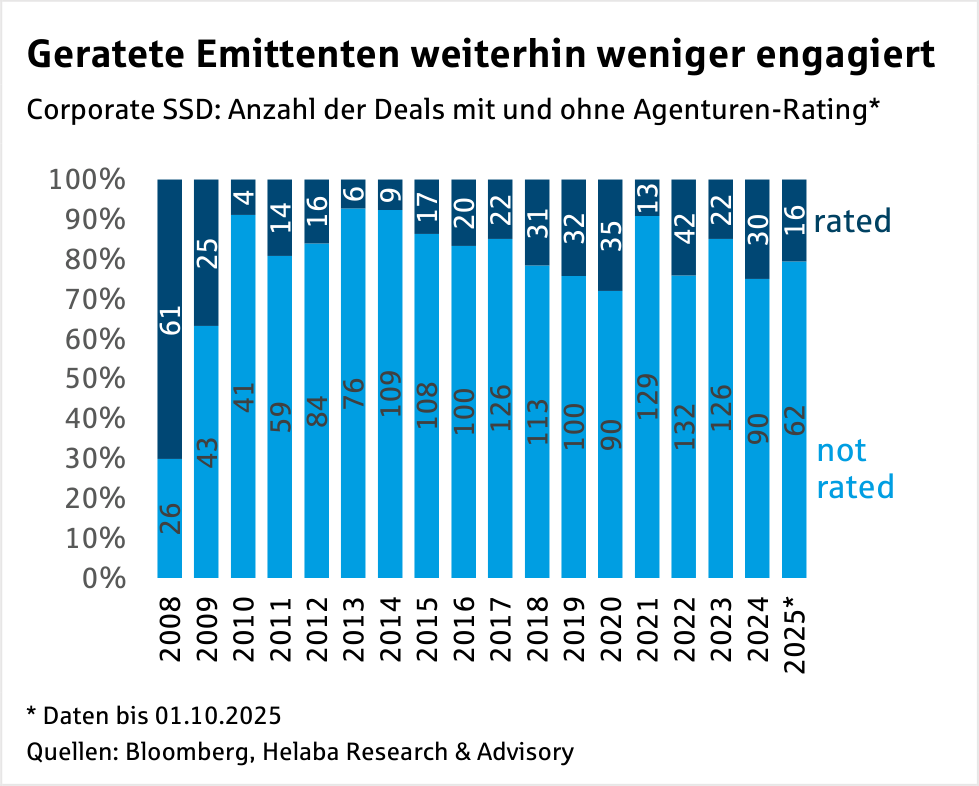 In den ersten neun Monaten wurde nun jede fünfte Transaktion von einem Unternehmen mit öffentlichem Agenturen-Rating an den Markt gebracht.