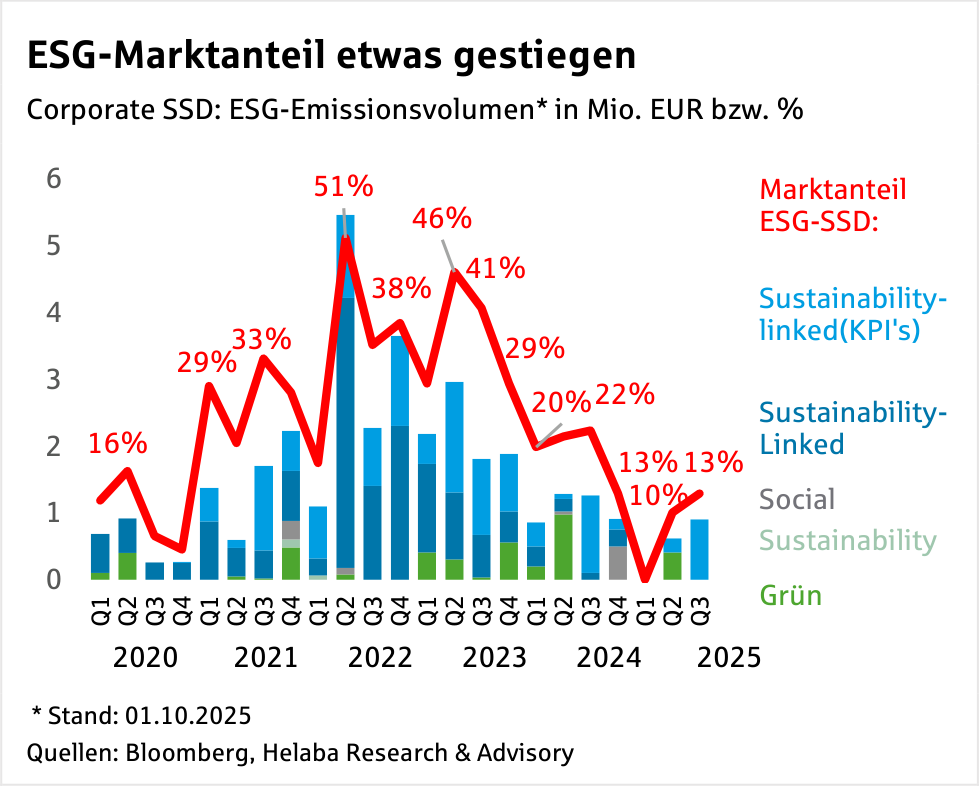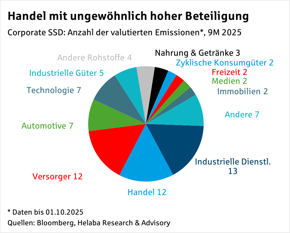 Geratete Unternehmen waren im dritten Quartal mit 9 von 33 valutierten SSD-Tranchen wieder etwas stärker engagiert.