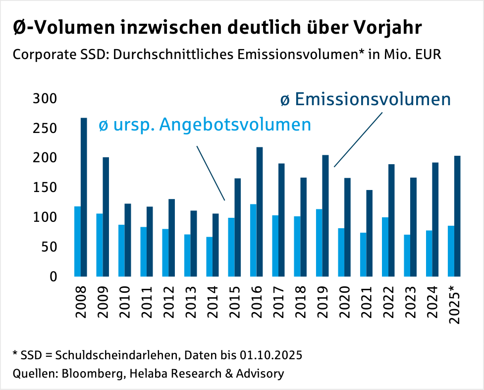 Kleinere Schuldscheine von bis zu 50 Mio. EUR spielten hingegen nur eine untergeordnete Rolle.ø ursp.