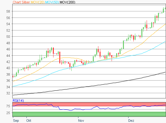 Mittlerweile schnuppert Silber nicht nur preislich reichlich Höhenluft, sondern auch technisch.