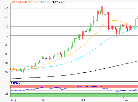 Der Silberpreis steigt mal wieder, vielleicht sehen wir hier ja doch noch eine kleine Jahresendrallye.