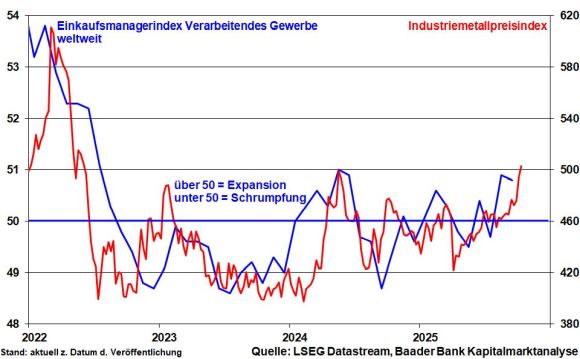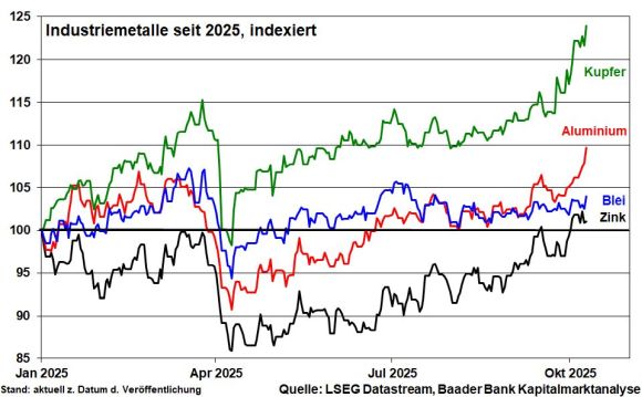 Infrastrukturmaßnahmen und Rüstungsausgaben werden jedoch ab 2026 die lange Nachfrage- und Investitionsschwäche beenden und für weitere Preisbefestigungen bei Industriemetallen sorgen.