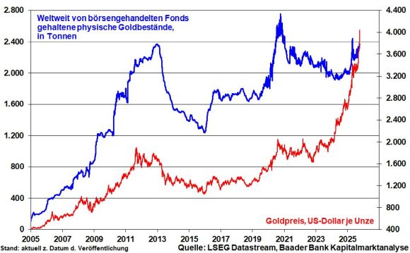 Tatsächlich, langfristig orientierte Investoren in börsengehandelte, mit physischem Gold hinterlegte Fonds entdecken das gelbe Metall wieder für sich, nachdem sie bislang im Durchschnitt unterinvestiert waren.