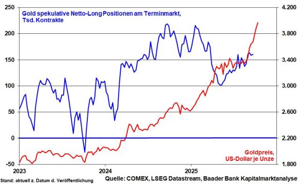 Von Seiten der Terminmärkte hatte sich zwar spekulativer Preisdruck seit Jahresbeginn aufgebaut, der das Risiko für Gewinnmitnahmen erhöhte. Doch haben sich die Netto-Long-Positionen mittlerweile wieder deutlich stabilisiert.