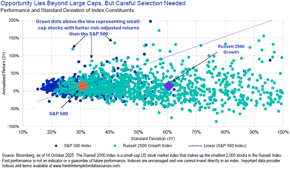 Ein Großteil der jüngsten Dynamik konzentrierte sich auf Mega-Cap-Aktien, deren Dominanz eher strukturelle als zyklische Kräfte widerspiegelt. Diese Unternehmen profitieren von ihrer technologischen Größe und Innovationsführerschaft, insbesondere in den Bereichen künstliche Intelligenz und Cloud-Ökosysteme.