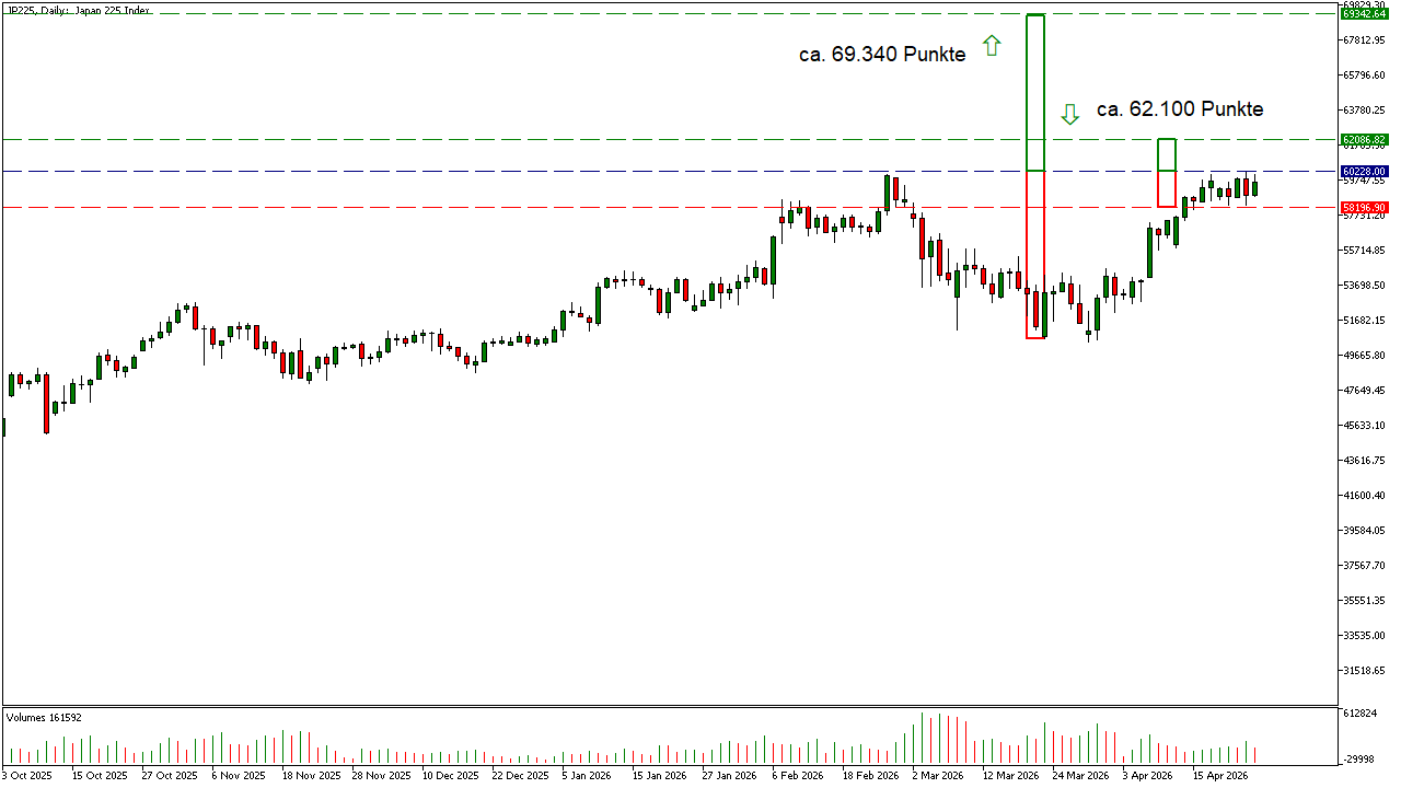 Für Trader mit größerem Zeithorizont eröffnet sich sogar weiteres Potenzial. Ohne übergeordnete Widerstände kann ein längerfristiges Ziel bei rund 69.340 Punkten anvisiert werden.