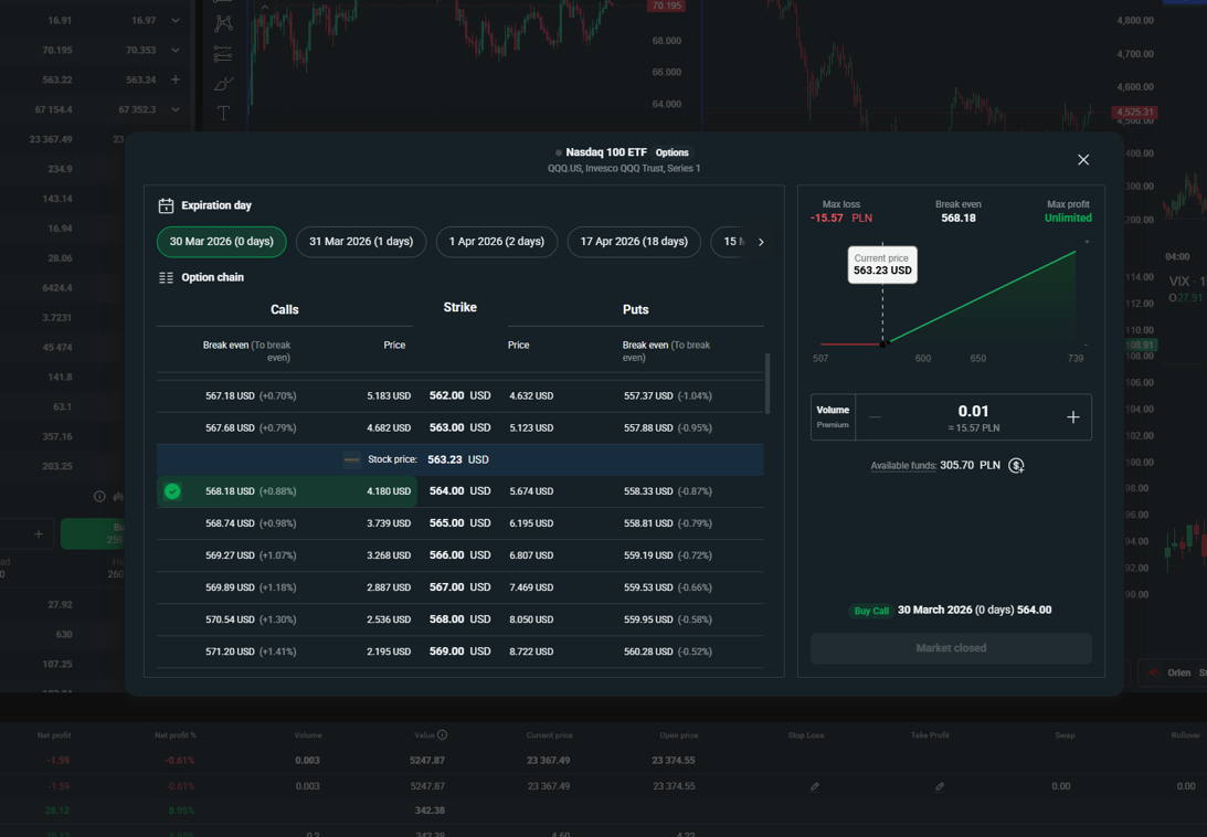 - der Optionshandel ist mit dem vollen Funktionsumfang der Plattform verfügbar.